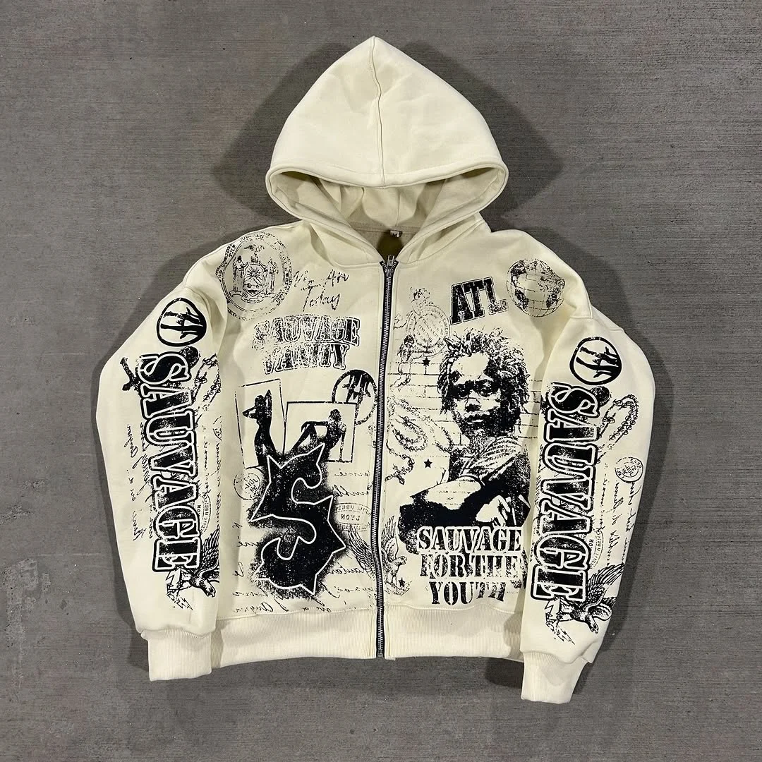 Amerikaanse mannenmode print zip-up hoodies harajuku hiphop hoge kwaliteit lange mouwen jassen losse hooded sweatshirt streetwear