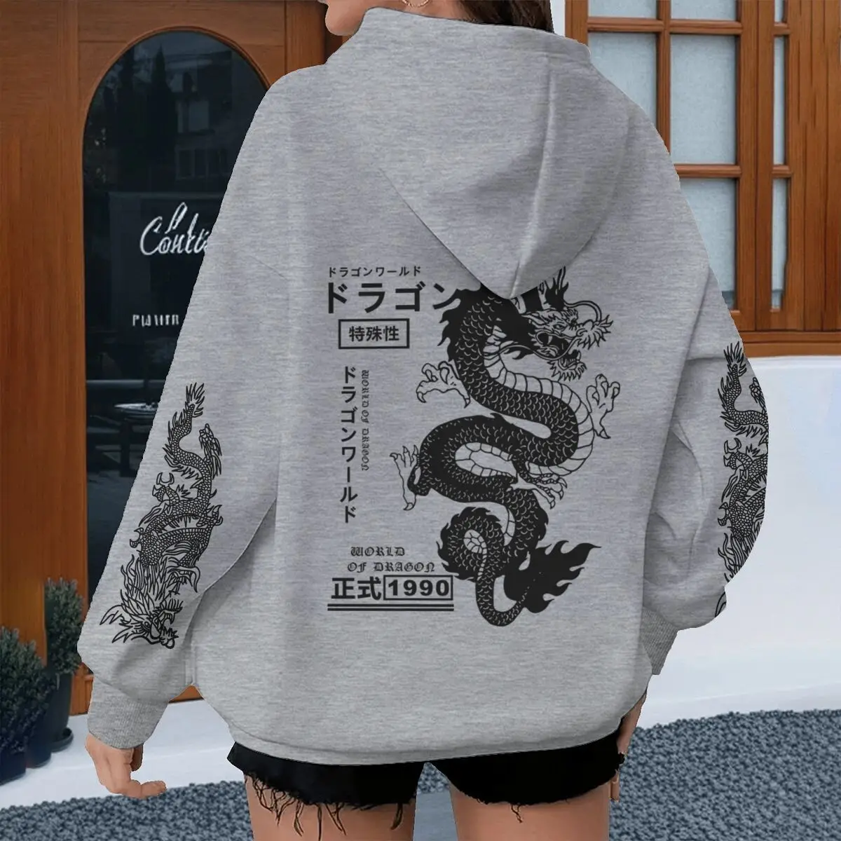 Harajuku Dragon bedrukte hoodies voor heren dames, casual sportieve lente herfst hoody in Japanse stijl, vintage unisex capuchon