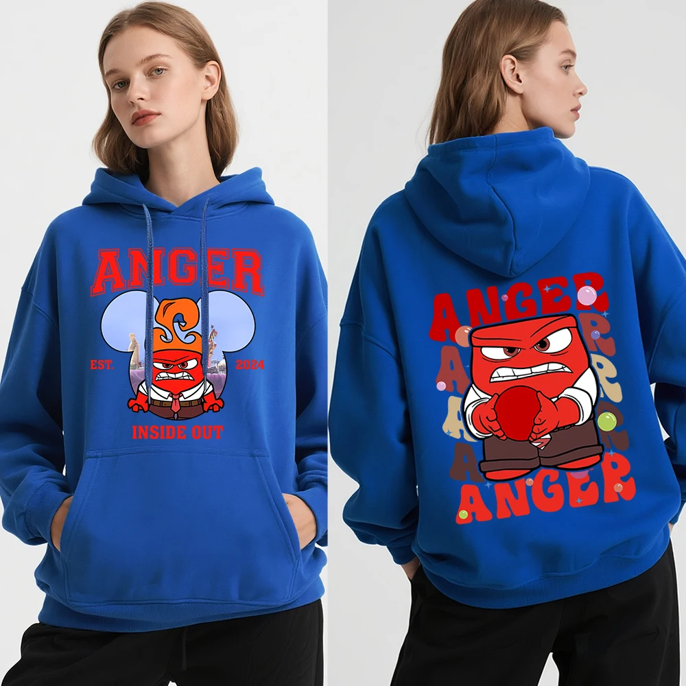 Disney Inside Out Anger Red Figural Print Volwassen Hoodie Dames Warm Fleece Gevoerd Winter Herfst Gezellig Zacht Sweatshirt
