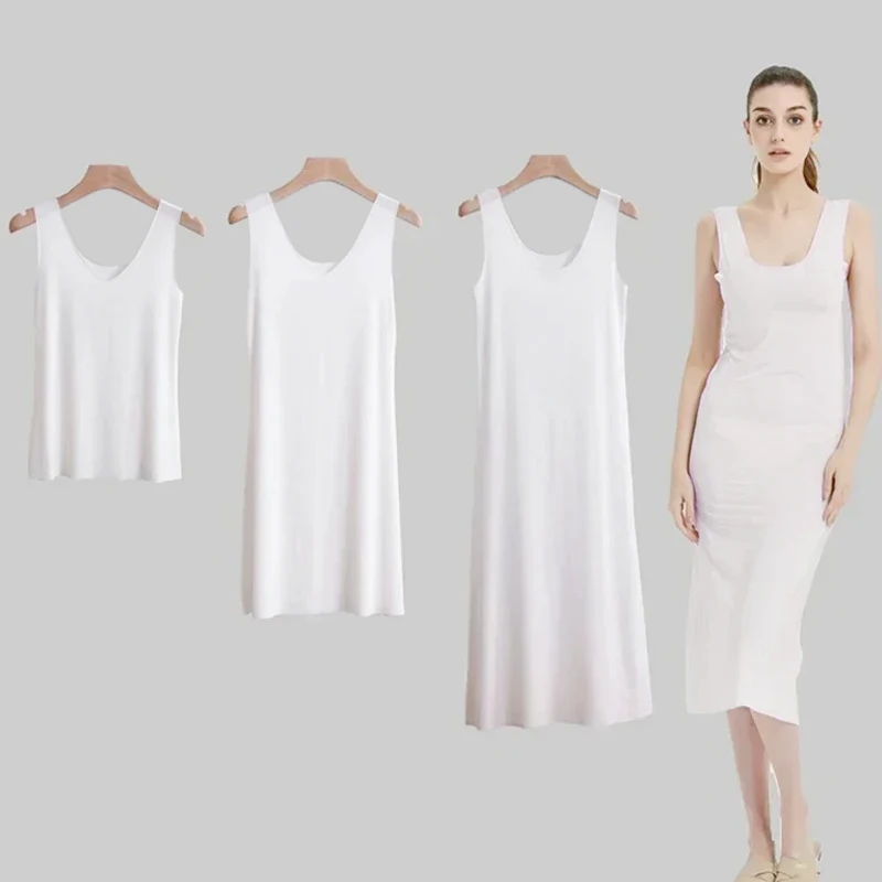 Dames Zomer Jurken zonder naden Dunne naadloze ijzijde Intieme onderkleding Onderrok Mouwloos Meisjes U-vormige hals Halflange jurk Onderjurken