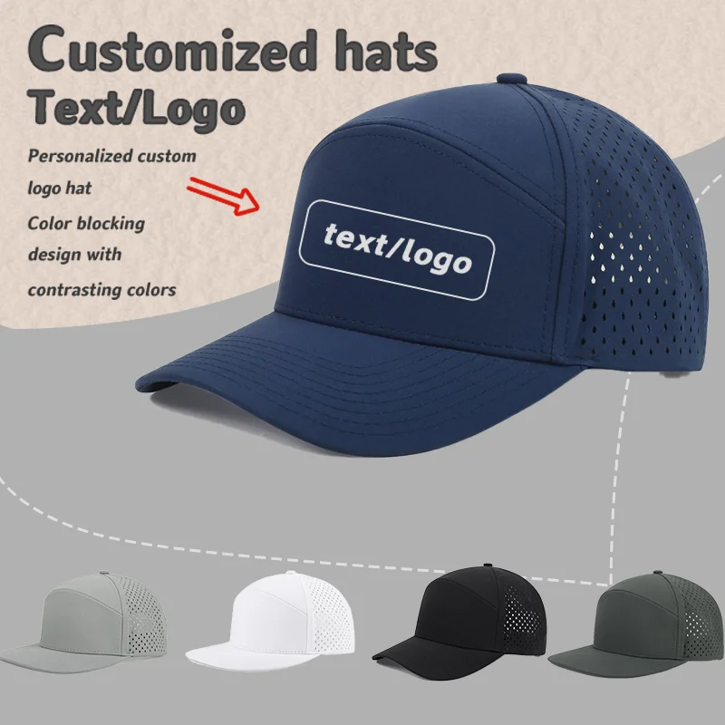 Aangepast logo 7-paneel anti-spattende baseballpet met harde bovenkant Zomer buitenzonwering Ademende mannen en vrouwen Sneldrogende mesh-hoed