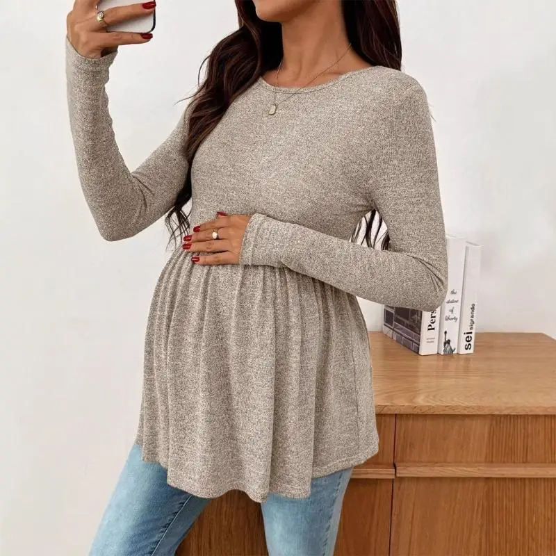 Womens moederschap tops lange mouw effen tuniek casual zwangerschap T-shirt moederschap kleding comfortabel flatterend pak