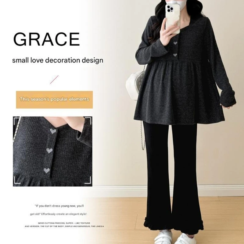 Zwangerschapstops met mouwen Pullover-stijl Blouses Ademend Zacht gebreide stof voor thuiskantoor Veelzijdig gebruik A2UB
