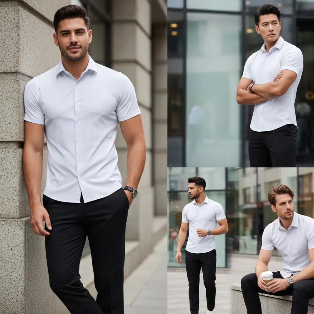 Herenoverhemd met korte mouwen, koelend ijszijde, hoge stretch, kreukvrij, naadloos zakelijk casual overhemd, groot en lang