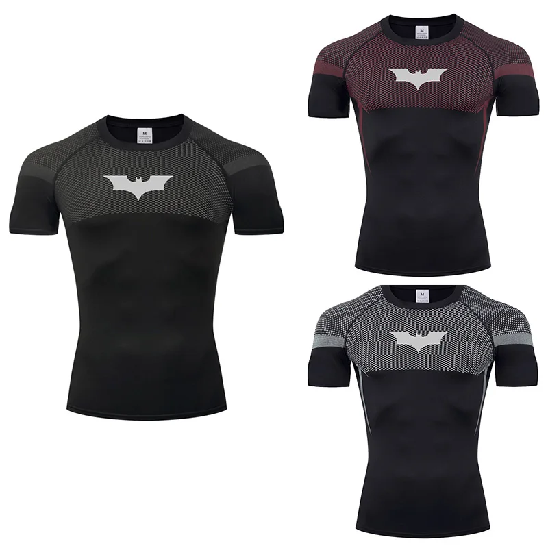 Bat Graphic Compressieshirts voor heren Rash Guard Gym Workout Running T-shirt Zomer Atletische sneldrogende T-shirts Tops