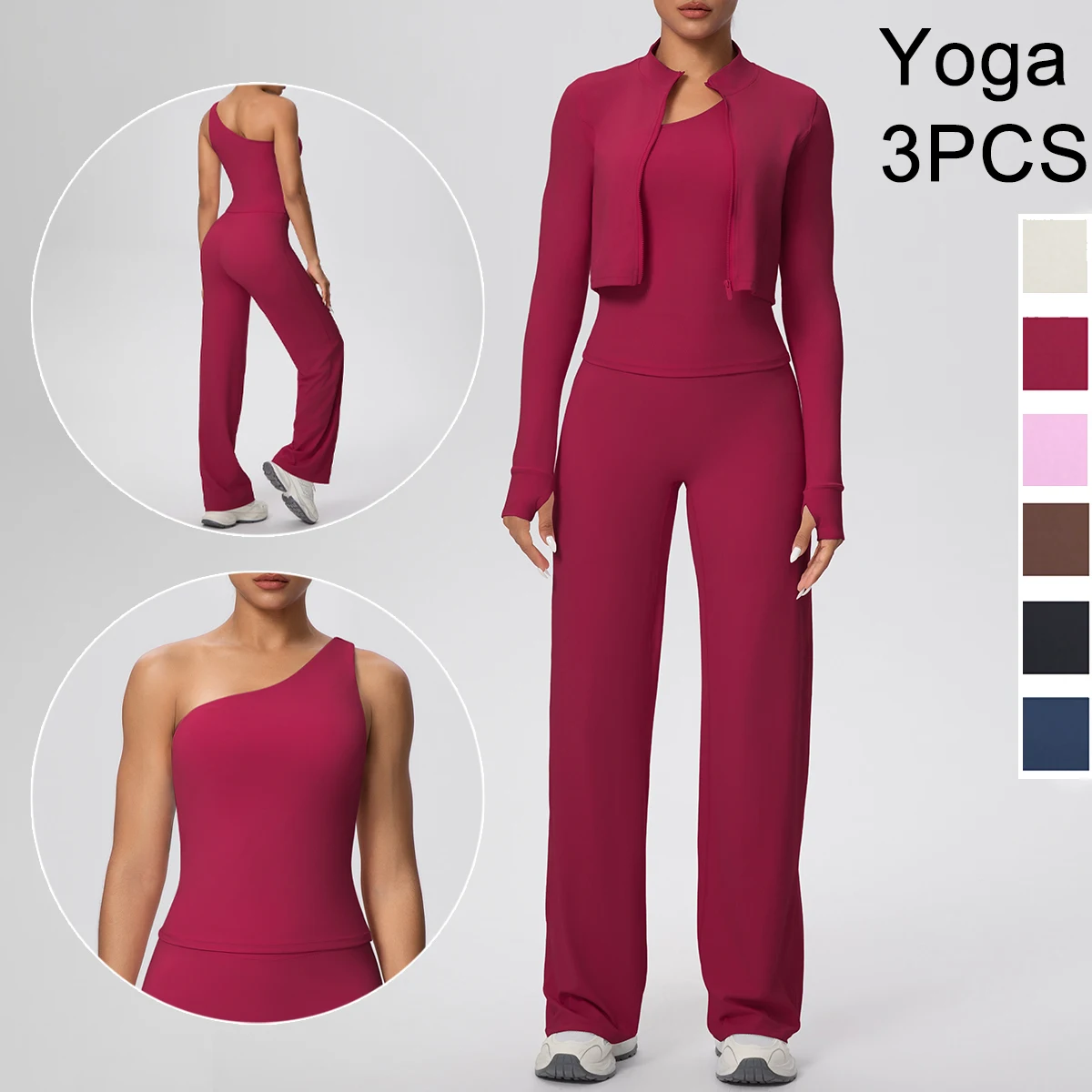 Vrouw sneldrogend fitness sport yoga set verzamelen sexy enkele schouder beha rits jas hoog getailleerde push-up hardloopbroek set