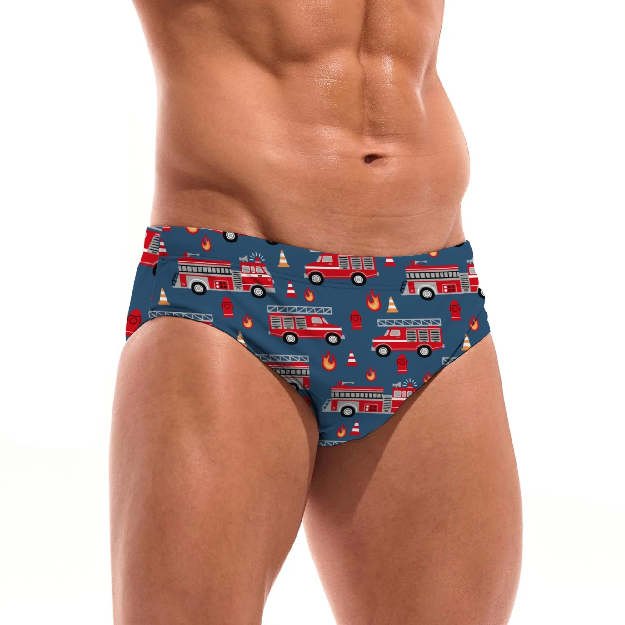 Cartoon brandweerwagen grappige zwembroek sexy heren bikini zwembadfeest strand surfshorts rekbare comfortabele herenslips badmode