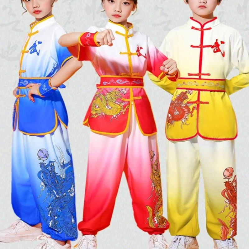 Vechtsport Kostuums Wushu Sets Kids Cosplay Kung Fu Uniform Babykleertjes Jongen Set Tai Chi Stadium Outfit Kinderen Tang Pak Meisje