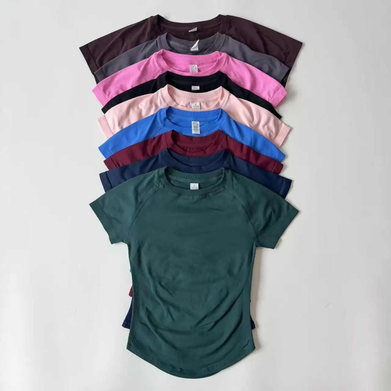 Yoga top met korte mouwen, ronde hals, naadloos gymshirt voor dames, hoge stretch, getailleerde sport-hardloop-T-shirts, trainingskleding