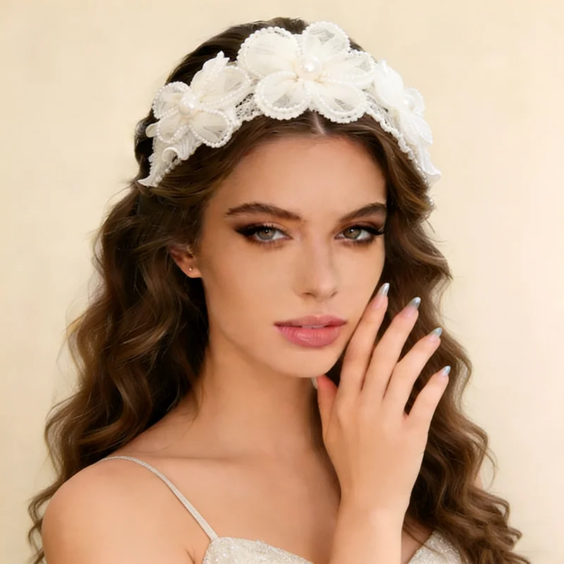 Witte stoffen bloem haarbanden vrouwen Franse elegante imitatieparel brede hoofdband partij bruidsmeisje bruiloft haaraccessoires B