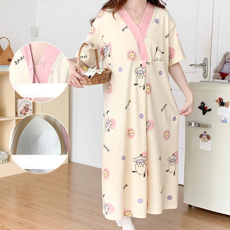 Moederschap Zomer Korte mouwen Moederschap Pyjama Set Vrouwen Losse Verpleging Nachtjapon Leuke Slaap Jurk Moederschap Nachtkleding