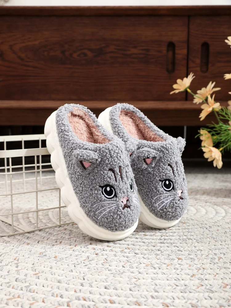 Winterpantoffels voor kinderen, damesschoenen, schattige cartoon kattenbontpantoffels