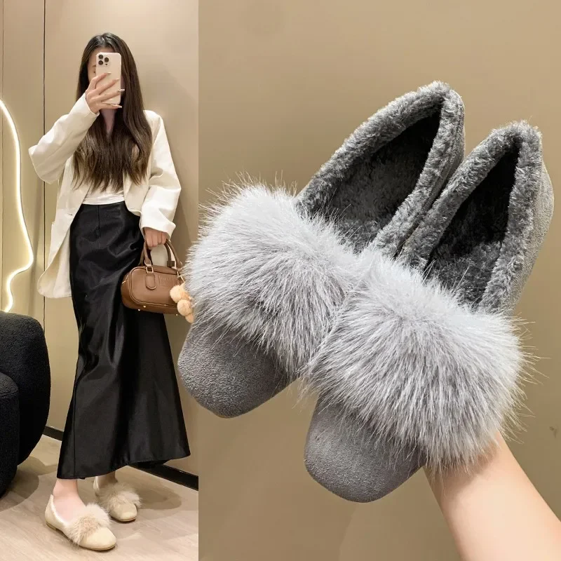 Dames Suede Slip-On Platte Schoenen Lamswol Femme Krullend Schapenbont Flats Warme Pluche Loafers Winter Katoenen Schoenen Harige Sneeuwlaars