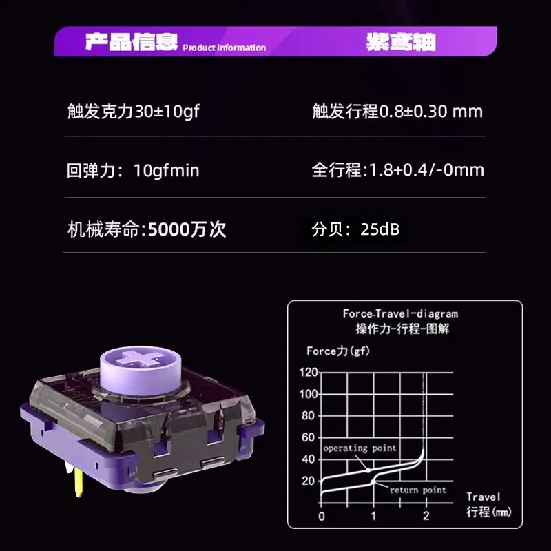 Kailh Purple Iris Silent Switch Purple Iris mini Low Profile-schakelaars Snelle bediening Stille schakelaars HITBOX-toetsenborden Schakelaar