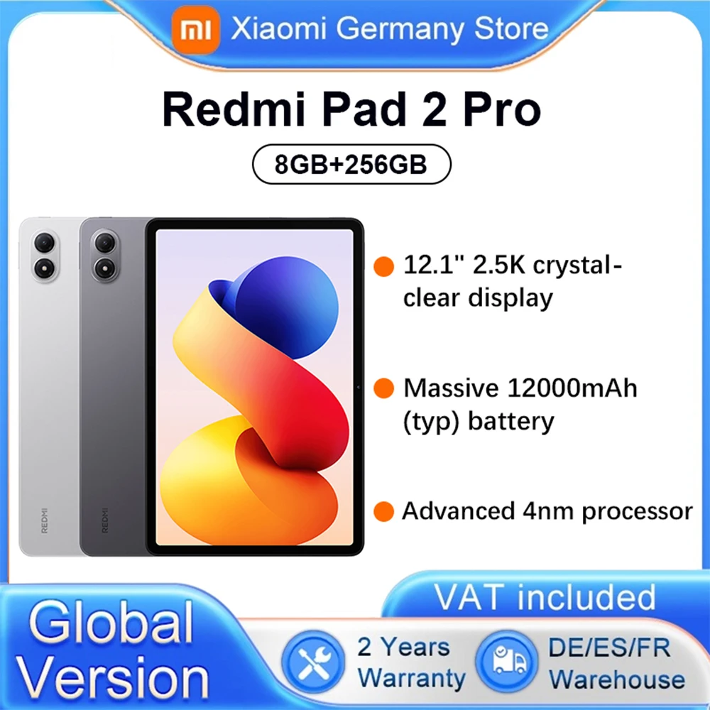Algemene versie Xiaomi Redmi Pad 2 Pro Wifi 12,1" Leeuwebek ® 7s Gen 4 mobiel platform 2,5K kristalhelder display 120 Hz vernieuwingssnelheid 12000 mAh batterij Xiaomi HyperOS Dolby Vision Advanced 4 nm processor Aangedreven door