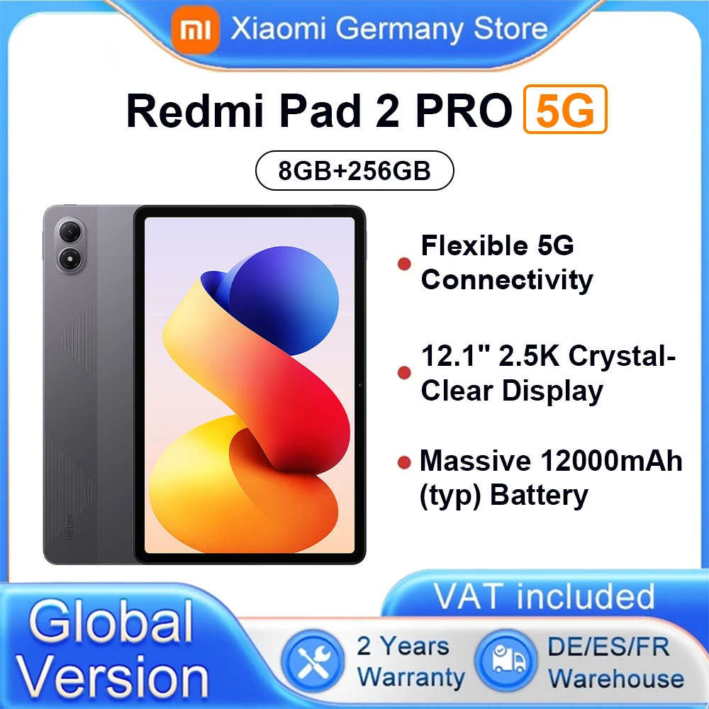 Algemene versie Xiaomi Redmi Pad 2 Pro 5G 12000 mAh batterij 12,1 "2,5K kristalhelder display 8 GB 256 GB Flexibele 5G-connectiviteit 5G + eSIM Xiaomi HyperOS