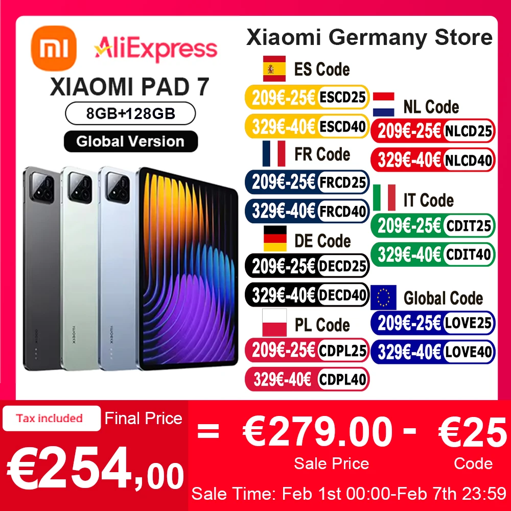 Globel-versie Xiaomi Pad 7 Snapdragon 7+ Gen 3 mobiel platform 8850mAh batterij 3,2K 144Hz kristalhelder display 11,2'' scherm Quad-luidsprekers Tablet 45W turbo opladen Dolby Visione Xiaomi HyperAI Aangedreven door Xiaomi HyperOS