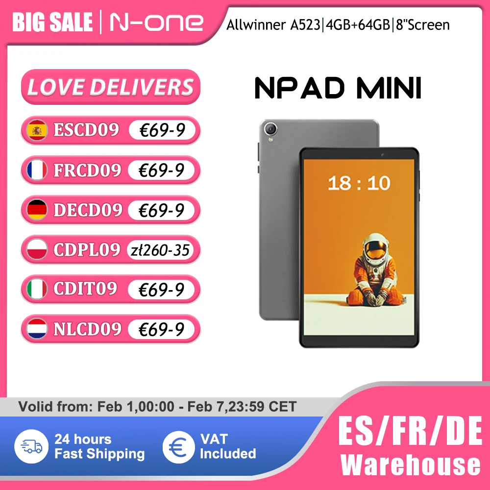 N-One Npad Mini Android 14 Os Tablet 8-Inch 1280*800 Ips Scherm 4Gb 8Gb Uitbreiding Ram 64Gb Rom Wifi 6 Bluetooth 5.2 Type-C 2025