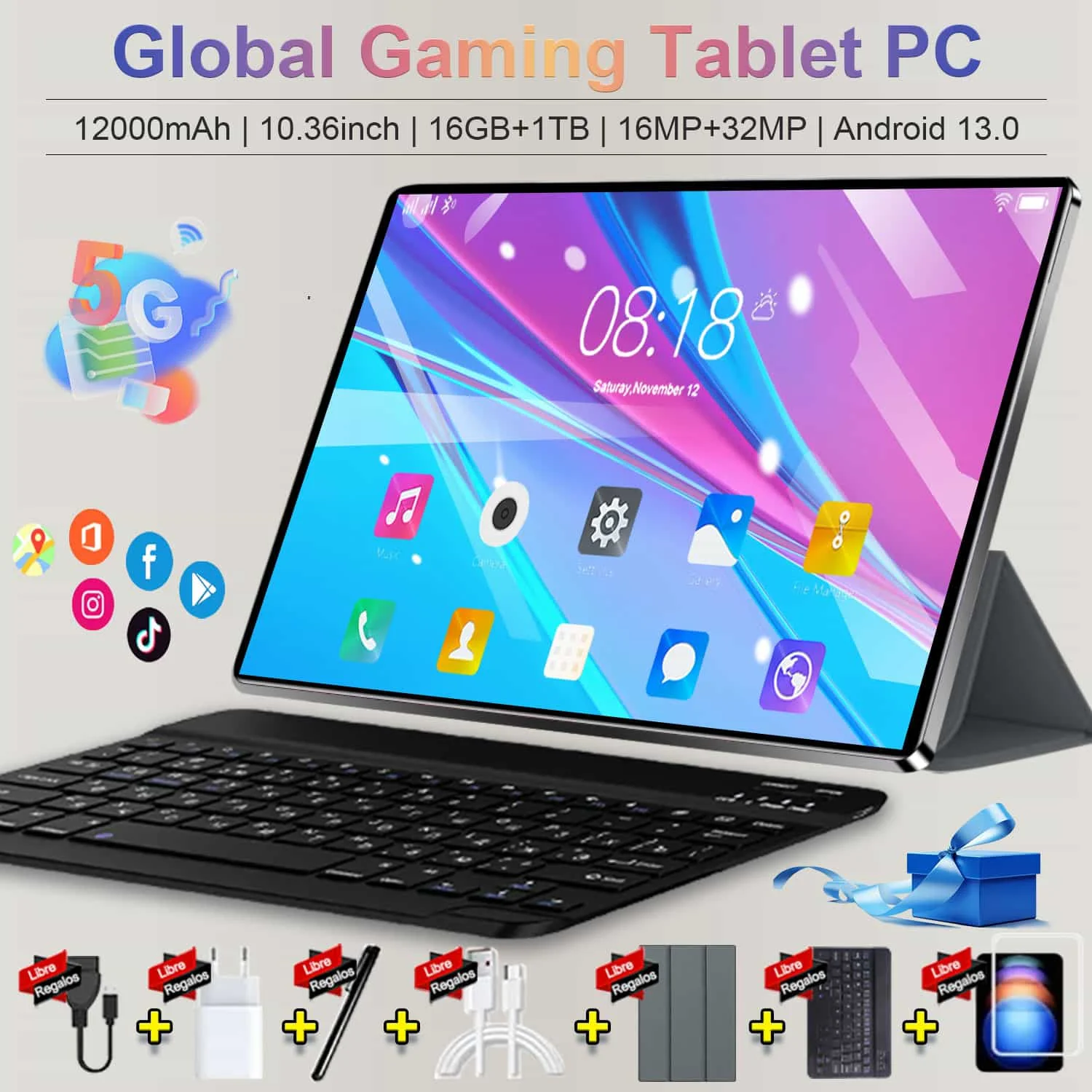 2025 Global 5G Android 13 tablet 10,36 inch 12 GB + 512 GB Dual SIM-oproep 12000 mAh