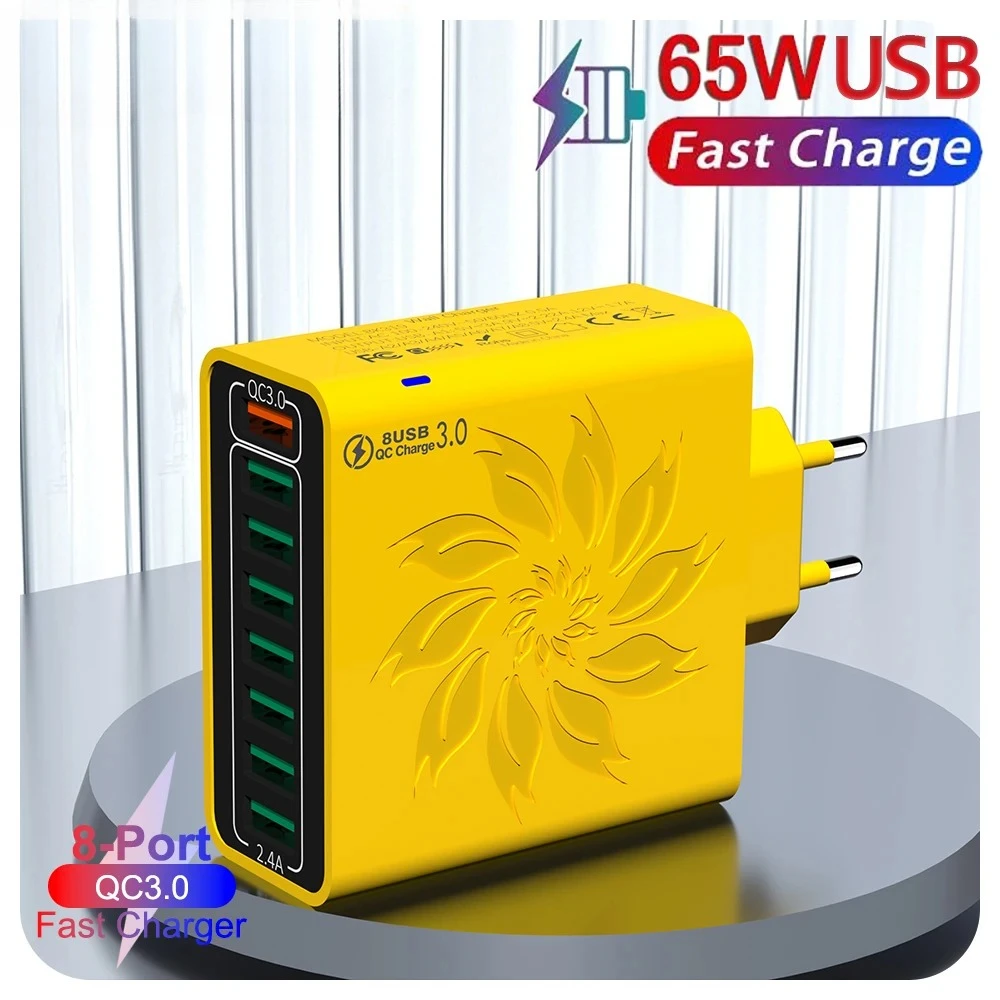 Multi-poorten USB-oplader 65W snelladen telefoonoplader voedingsadapter voor iPhone Samsung Xiaomi QC3.0 EU/US/KR stekker wandlader