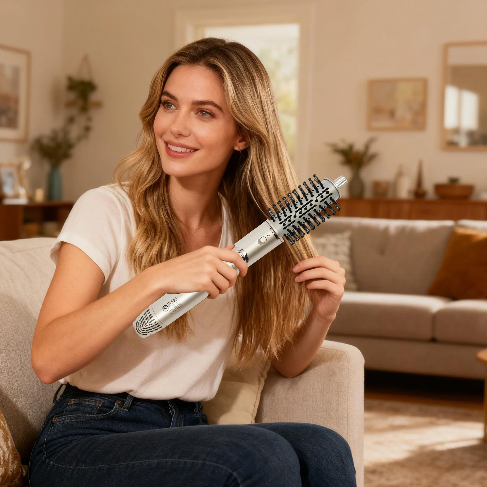 7-in-1 haardrogerborstel Ionische föhn met diffuser Borstelloze hogesnelheids automatische krultang kam