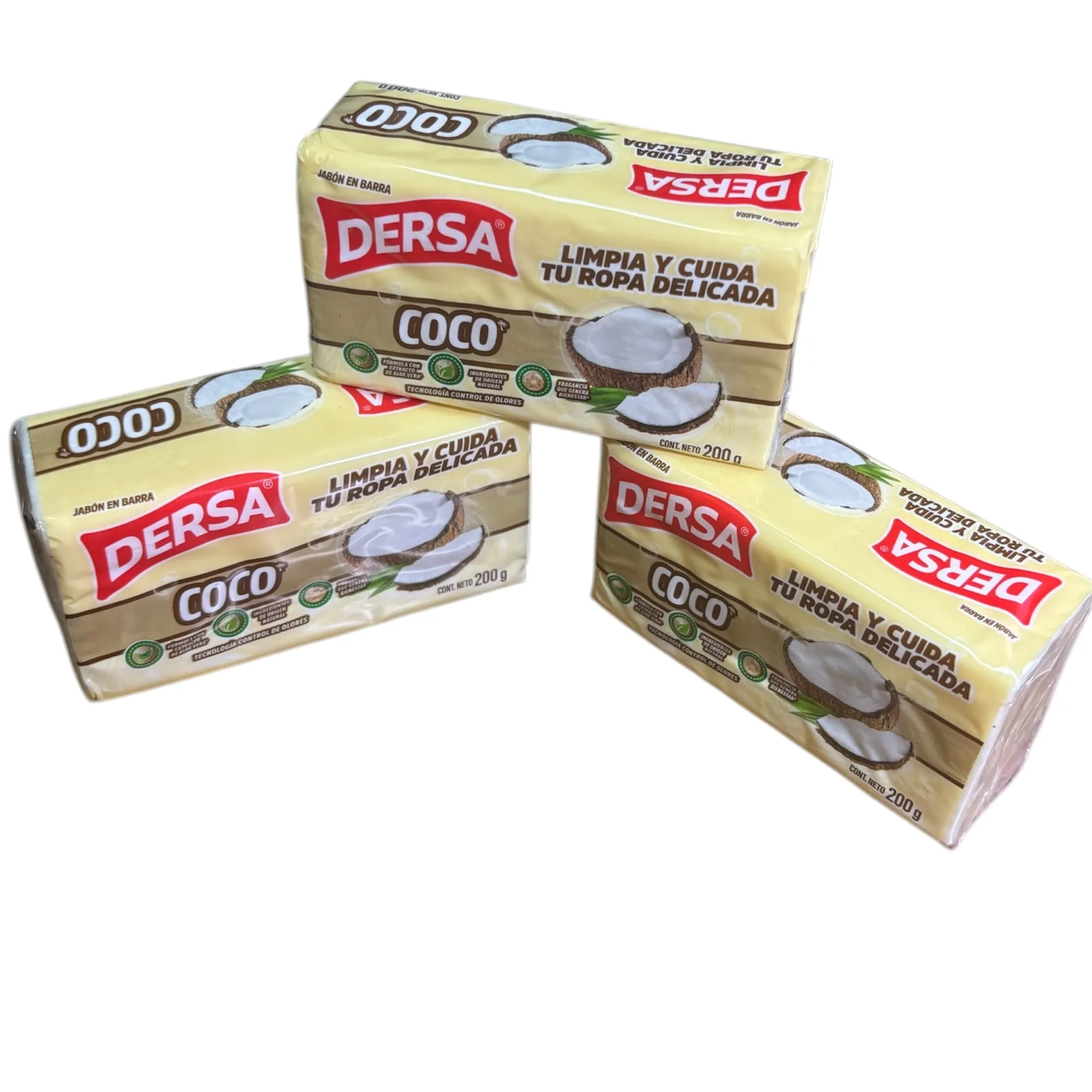 Kokoszeep in reep, 3 stuks, gemaakt van natuurlijke materialen in Colombia, economisch formaat, geschikt voor persoonlijke hygiëne, gewicht van elke reep 200 gram