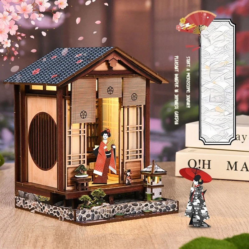 Diy Boekensteun Boekenhoek 3D Houten puzzel Handgemaakte Japanse binnenplaats Diorama Creatief assemblagemodel Home Decor voor volwassenen
