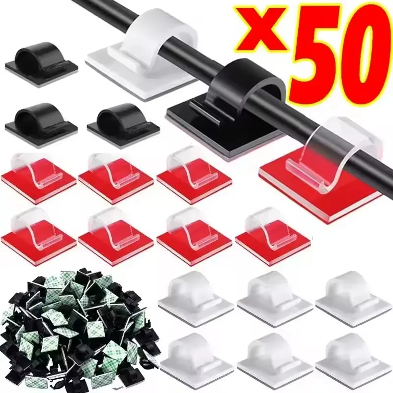 5/50 Stuks Desktop Muur Kabel Clips Draadbeheer Zelfklevende Snoer Organisatoren Houder Klem voor USB Netwerk hoofdtelefoon Kabels