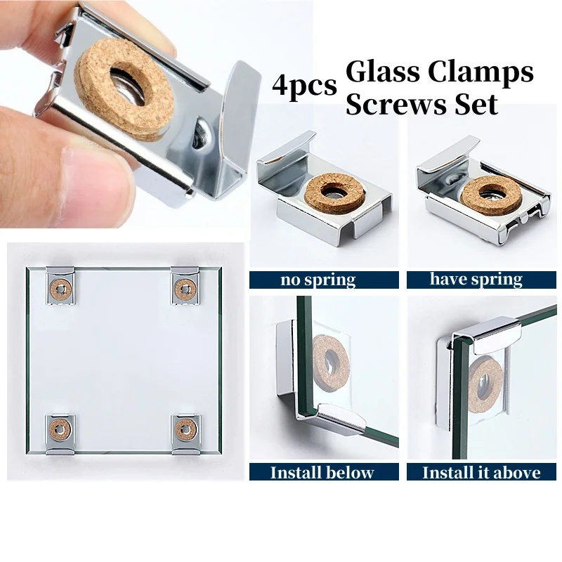 4 Stks/set Eenvoudig Te Installeren Vierkante Badkamer Duurzame Spiegelclips Verstelbare Slaapkamer