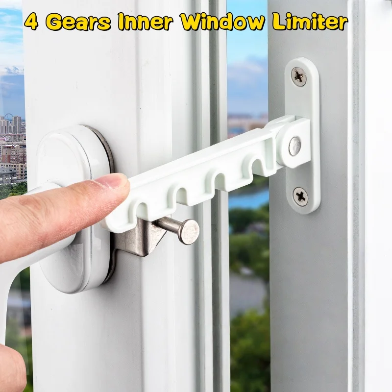 4-versnellingen Kunststof stalen raambegrenzer Vergrendelingen Raamstopper Ventilatie Binnenopening Limietslot Kinderveiligheid Windbeugelbeugel