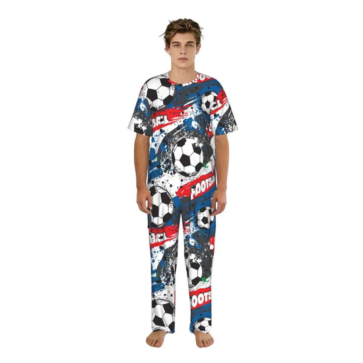 Herenpyjama met korte mouwen, tweedelige broek, Frankrijk voetbalkampioenschap met bal en Franse vlag, huiskleding, nachtkleding