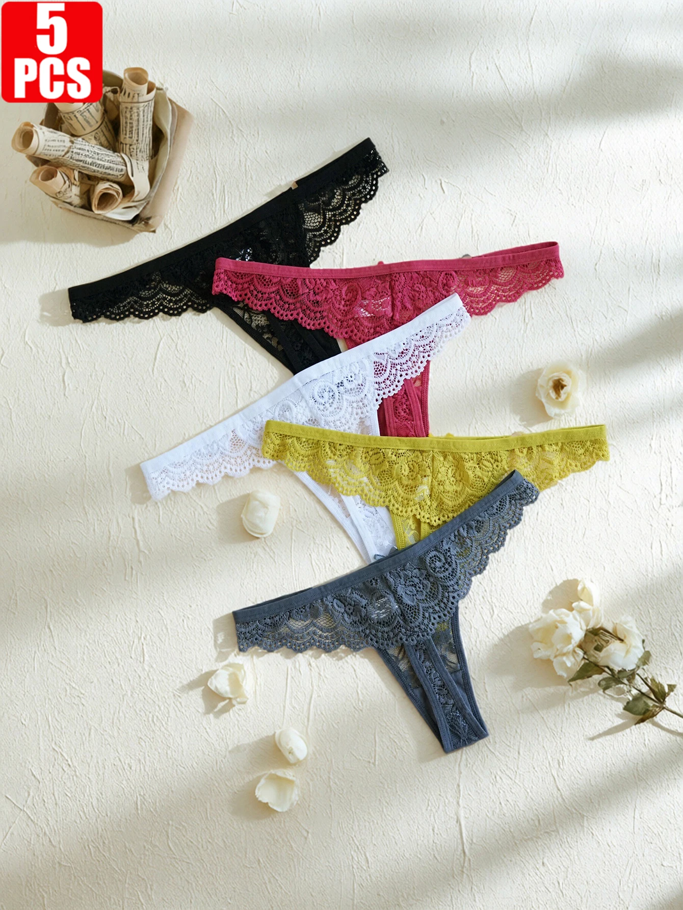 5-pack kanten damesslipjes, modieus, comfortabel, nauwsluitend, lage taille, sexy, effen kleur strings