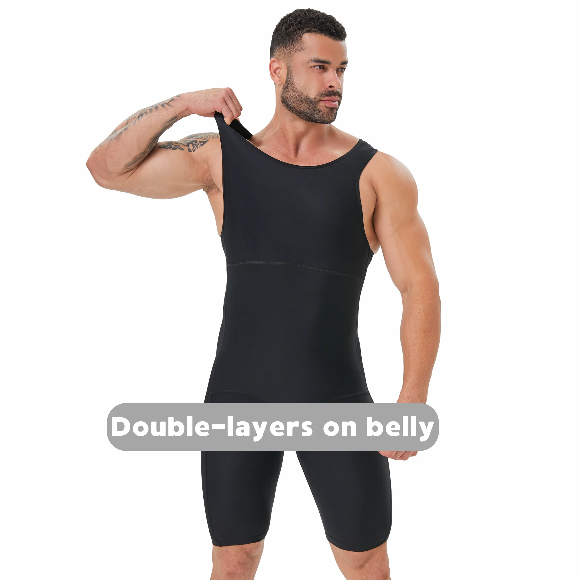 Herenshaper met dubbele laag, buikcontrole, ademend, anti-schuur, fitness compressie onderkleding