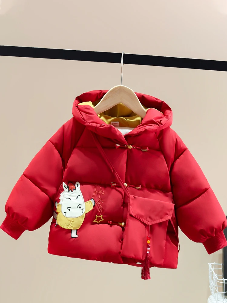 Modieuze, met fleece gevoerde katoenen jas voor kinderen, warme babyjas, winterkleding voor kinderen, zoete lange mouwen, ritssluiting...