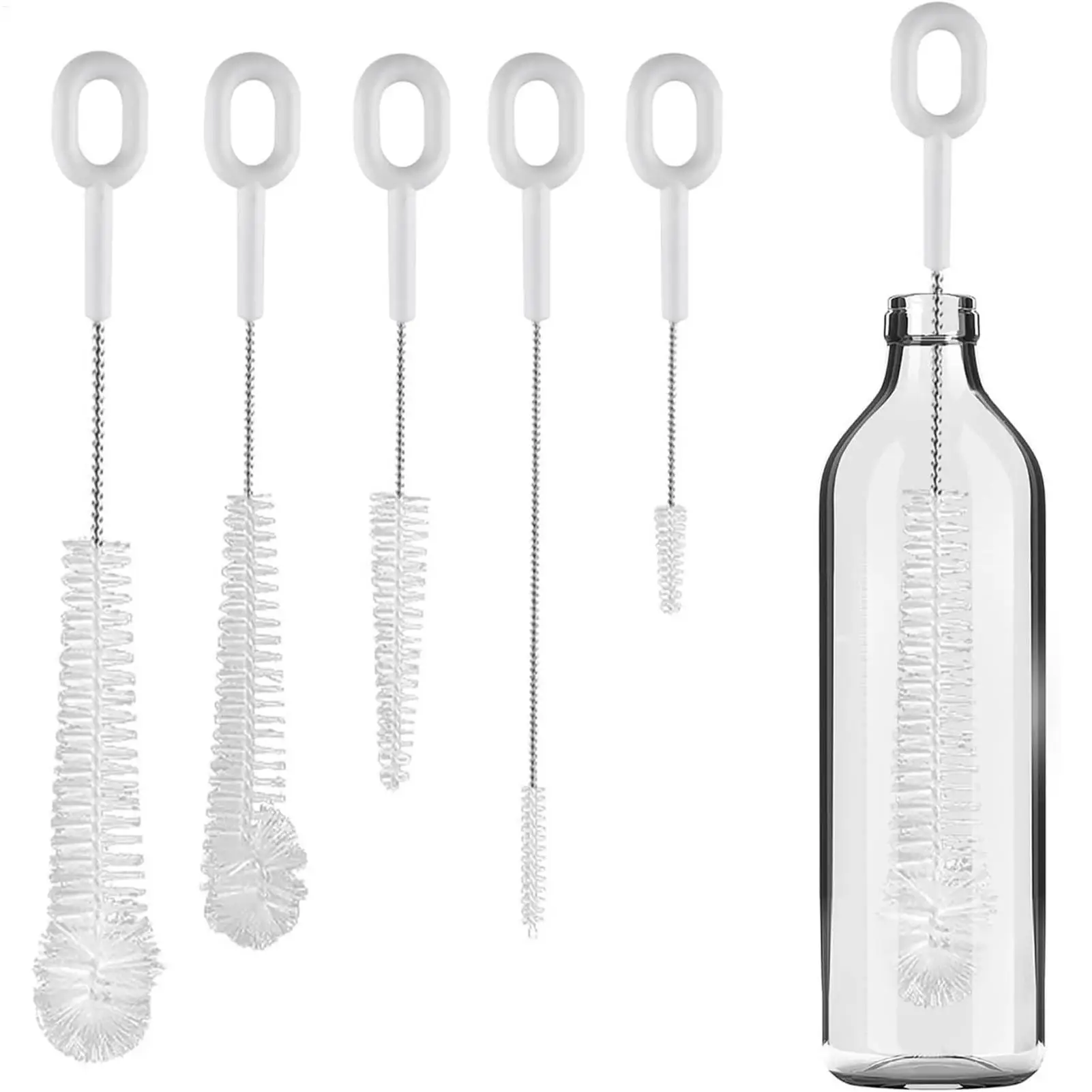 5PCS Flexibele Flessenborstelset Smalle Spleet Reinigingsborstel voor Babyfles Borstkolf Stro, Sapcentrifuge Deksels Tepelreiniger