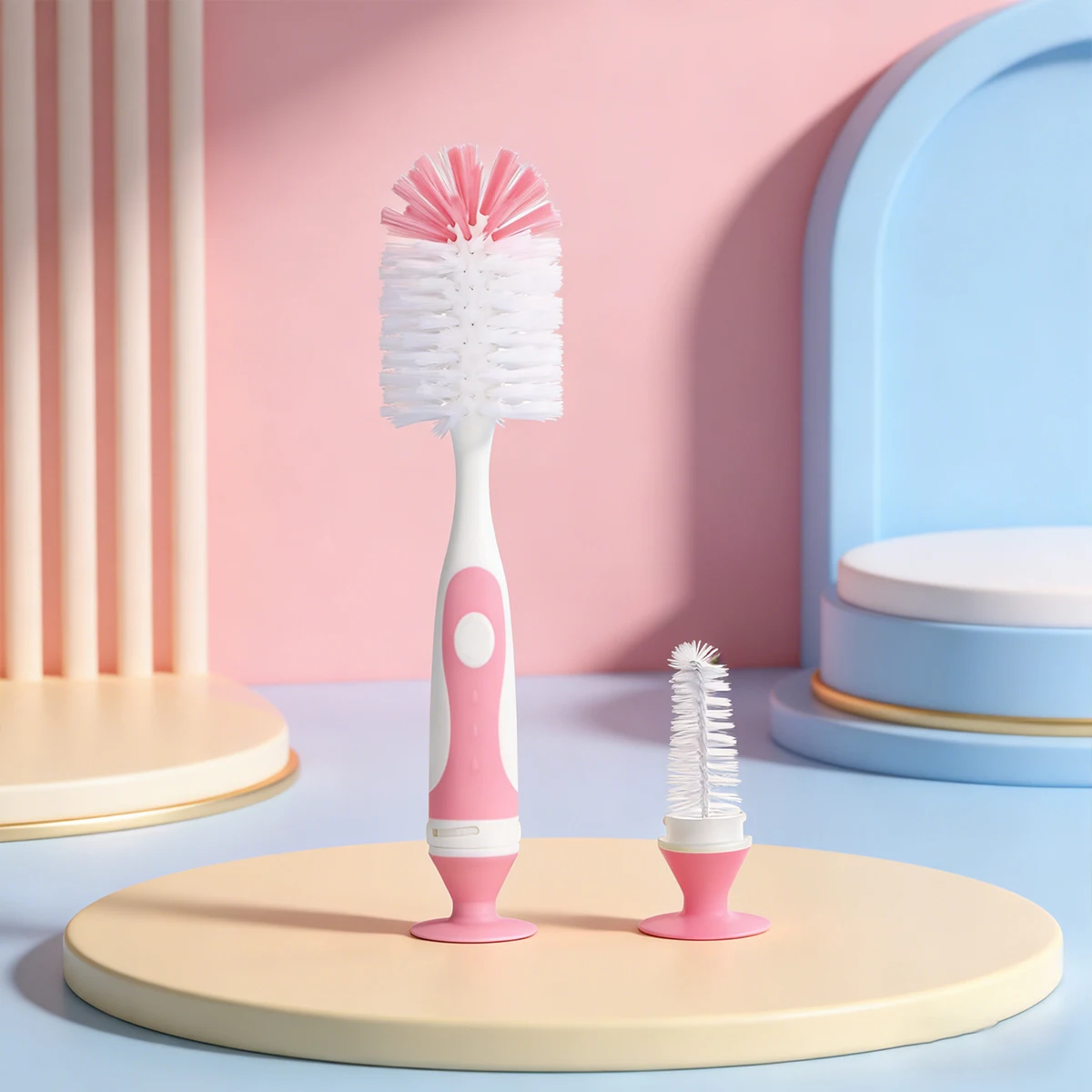 2-in-1 nylon borstel voor babyflessen met tepelborstel en zuignap, bekerborstel, dagelijkse reinigingsborstel voor voedingsflessen