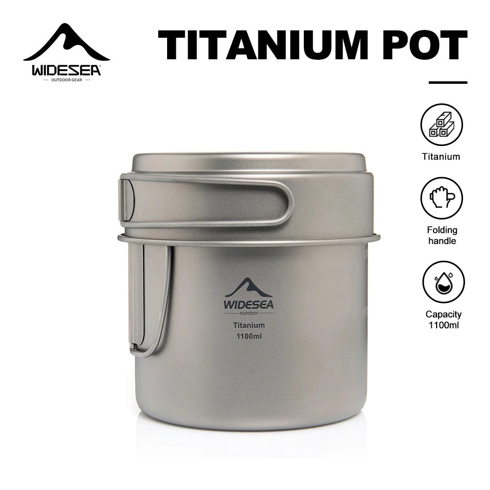 Widesea Ultralight Titanium Campingpot 1100ml Opvouwbaar handvat Draagbaar buitenkookgerei met netzak voor backpacken Wandelen Tr