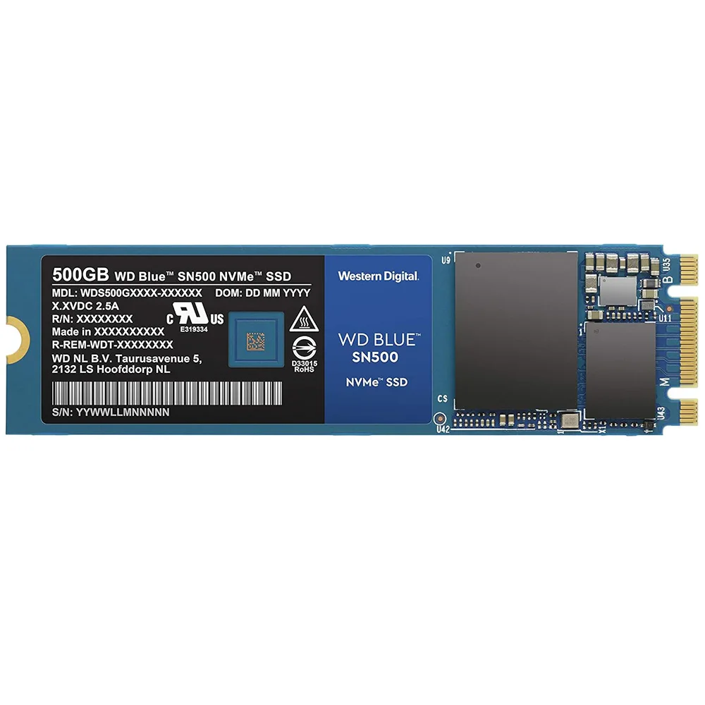 Western Digital 500 GB WD Blue SN500 NVMe interne SSD - Gen3 PCIe, M.2 2280, 3D NAND, tot 1700 MB/s - WDS500G1B0C (REENW)