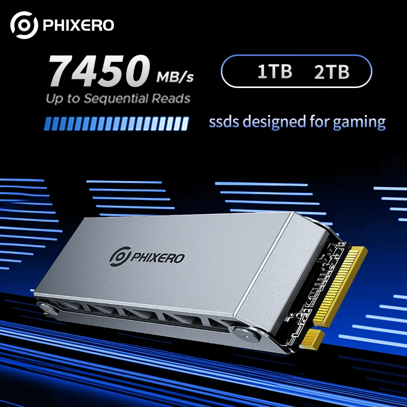 PHIXERO M.2 SSD NVMe 7450 MB/s TLC 1 TB 2 TB PCIe4.0x4 M.2 2280 Interne Solid State Drive M Sleutel 2280 Voor Gaming PS5 Desktop PC