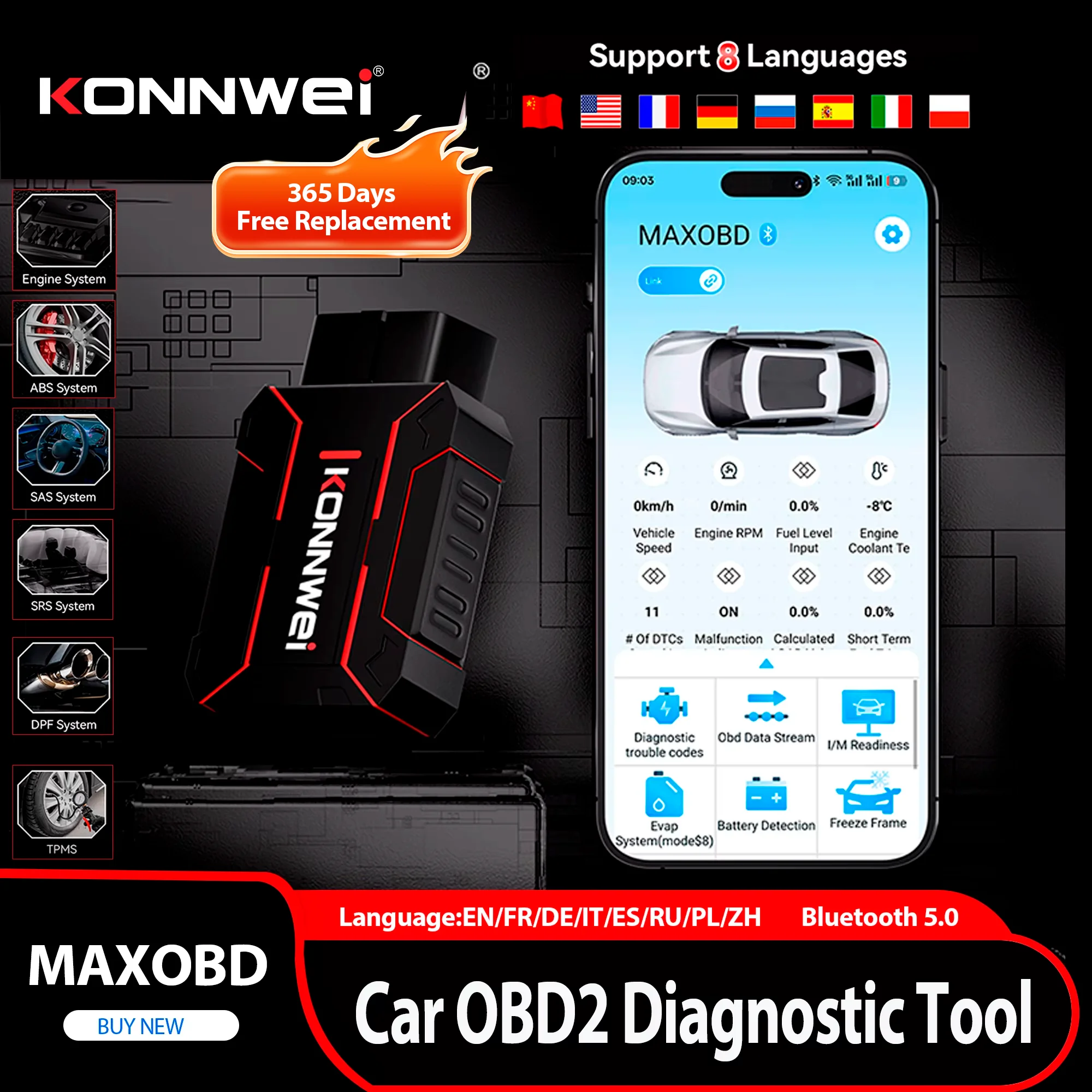 2026 KONNWEI MAXOBD Auto OBDII Diagnoseapparaat Volledig Systeem SAS SRS ABS Systeem Diepgaande Scan Bluetooth Verbinding OBD2 Scanapparaat