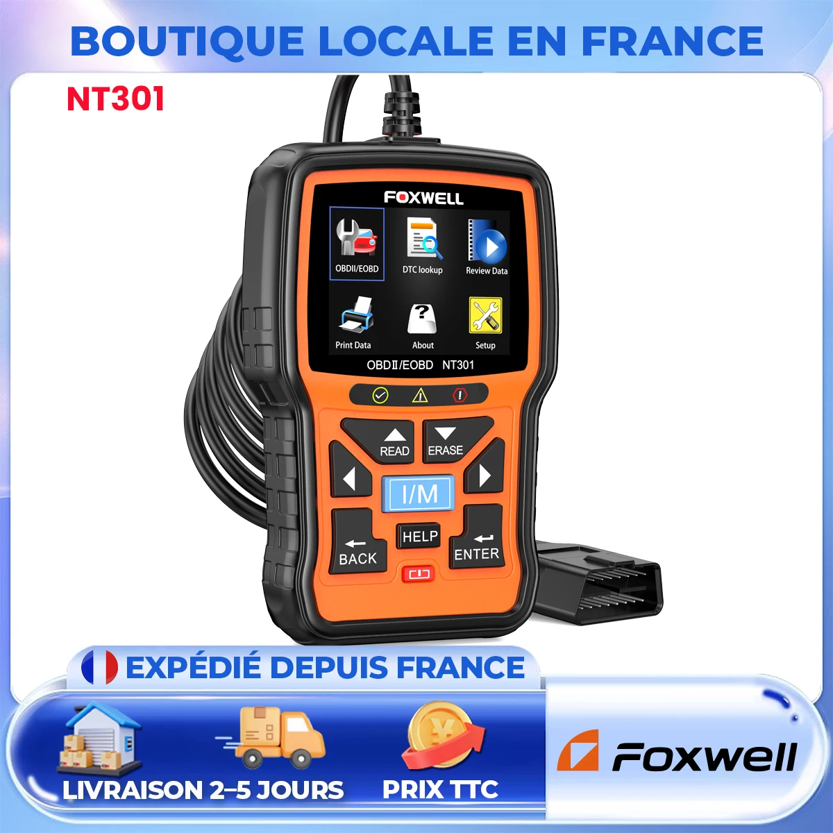 FOXWELL NT301 OBD2-scanner Live data Professionele monteur OBDII diagnostische codelezertool voor Check Engine Light I/M-lezingen