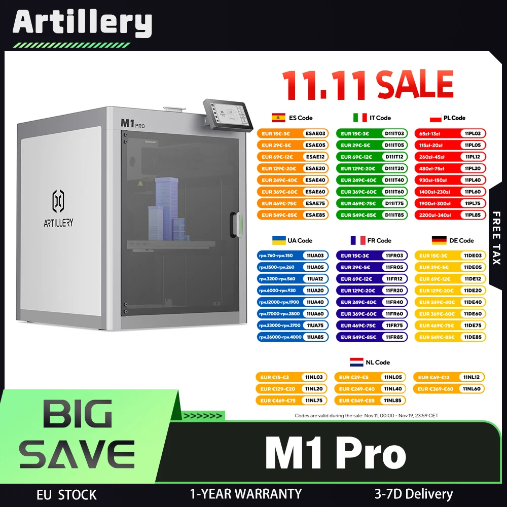 Artillery M1 Pro 3D-printer, 600 mm/s hoge snelheid, automatische nivellering, monolithisch gegoten aluminium frame, Wi-Fi, 260 * 260 * 260 mm, intelligent