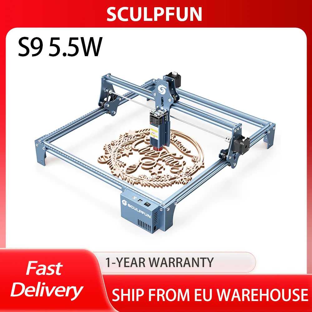 SCULPFUN S9 5,5 W lasergraveerder, 0,06 mm ultrafijne gecomprimeerde spot, diodelaser, 0,08 mm hoge precisie, gesneden 15 mm dik hout 10 mm