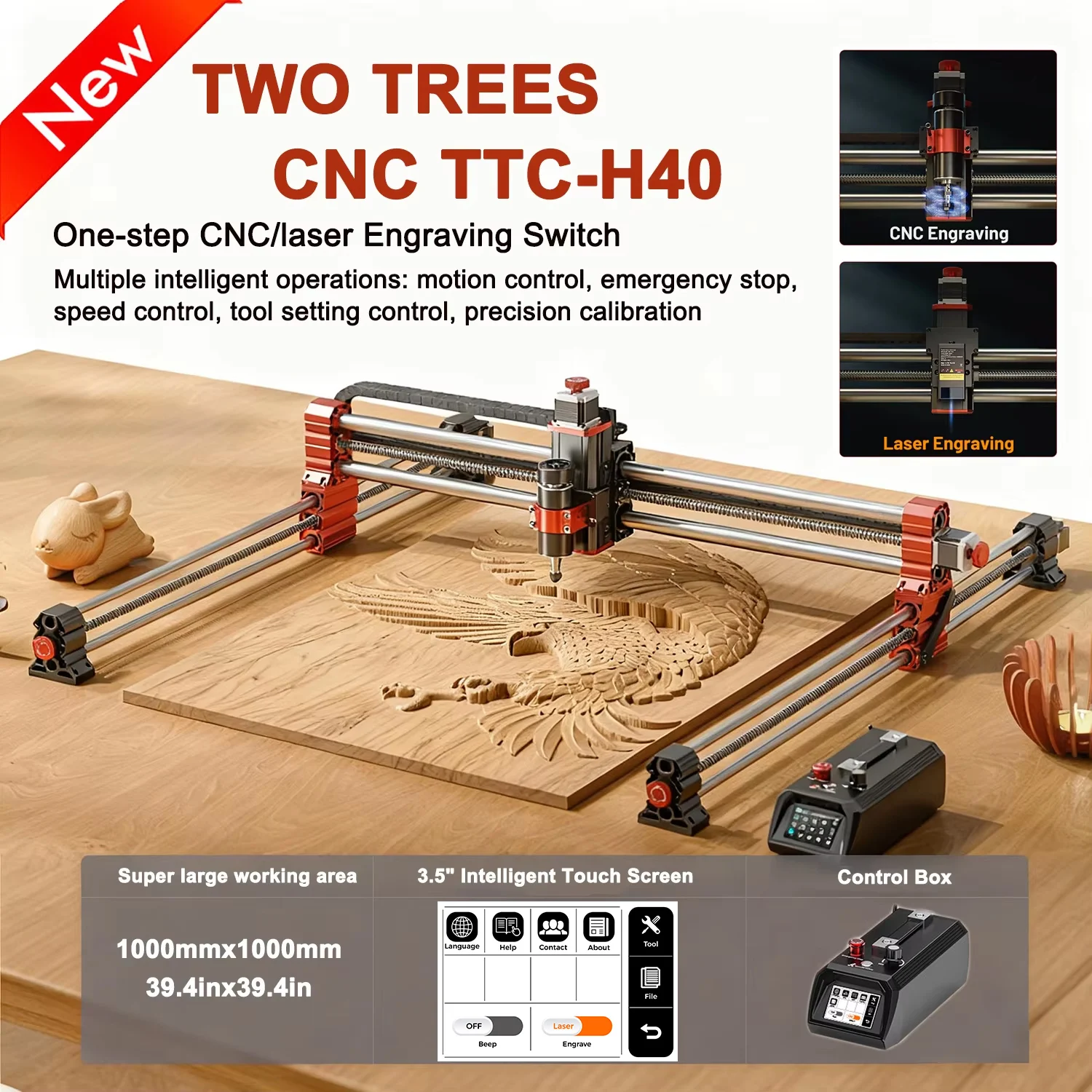 Twotrees TTC H40 CNC-routermachine 1000x1000mm Groot werkgebied Eenstaps CNC / lasergraveerschakelaar Multi-materiaal Compatibel