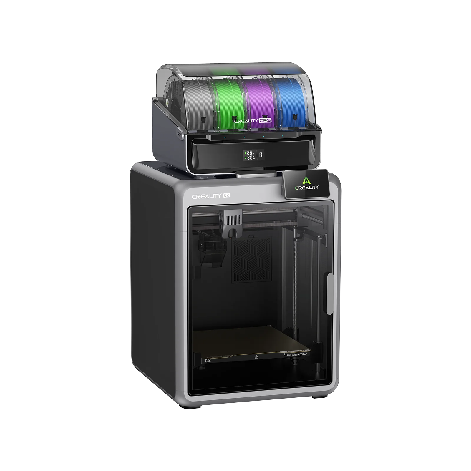 CREALITY K2 Combo 3D-printer 600 mm/s Snelheidsondersteuning Tot 16 kleuren Afdrukformaat 260 mm x 260 mm x 260 mm Volledig gesloten 3D-printer