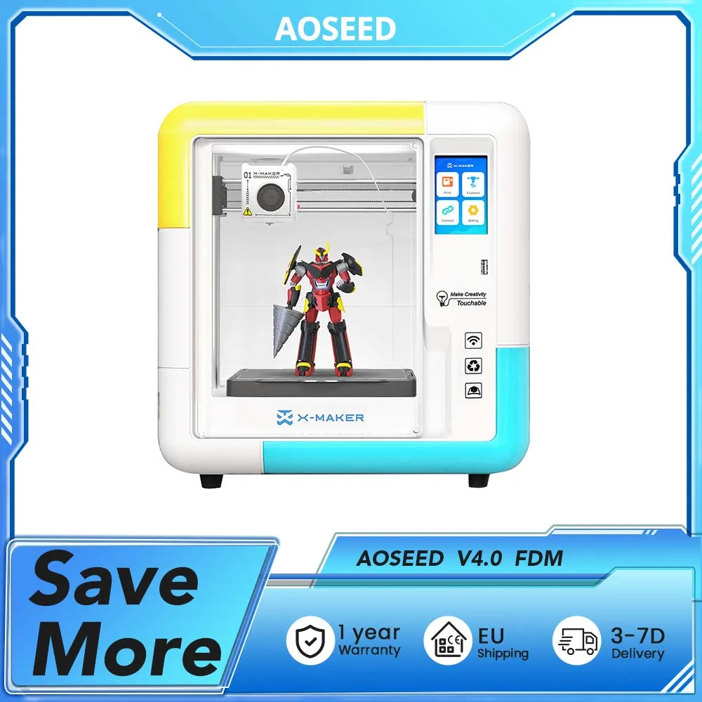 AOSEED X-MAKER AI + V4.0 3D-printer, 0,05 mm, 400 mm/s max., 150x150x150 mm bouwvolume, volledig ingesloten, wifi & hervatting van printen, kindvriendelijk