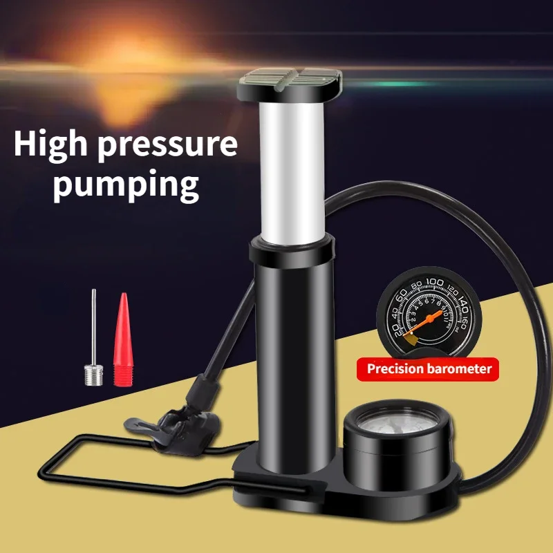 Voetpedaal Hogedrukpomp Fietsbatterij Auto Huishoudelijk Mini Draagbare Voetpedaal Luchtpomp met Barometer Fietsaccessoires