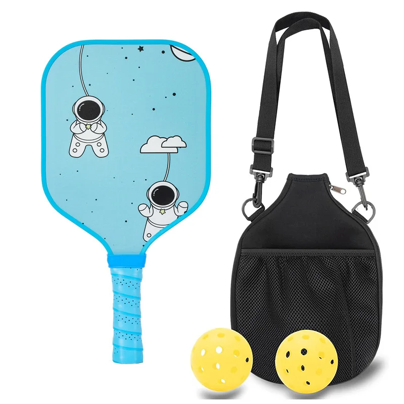 Pickleball-racketset voor kinderen Honingraatkernpeddel Kindercartoonprint Glasvezel Pickleball-peddelset met 2 ballen
