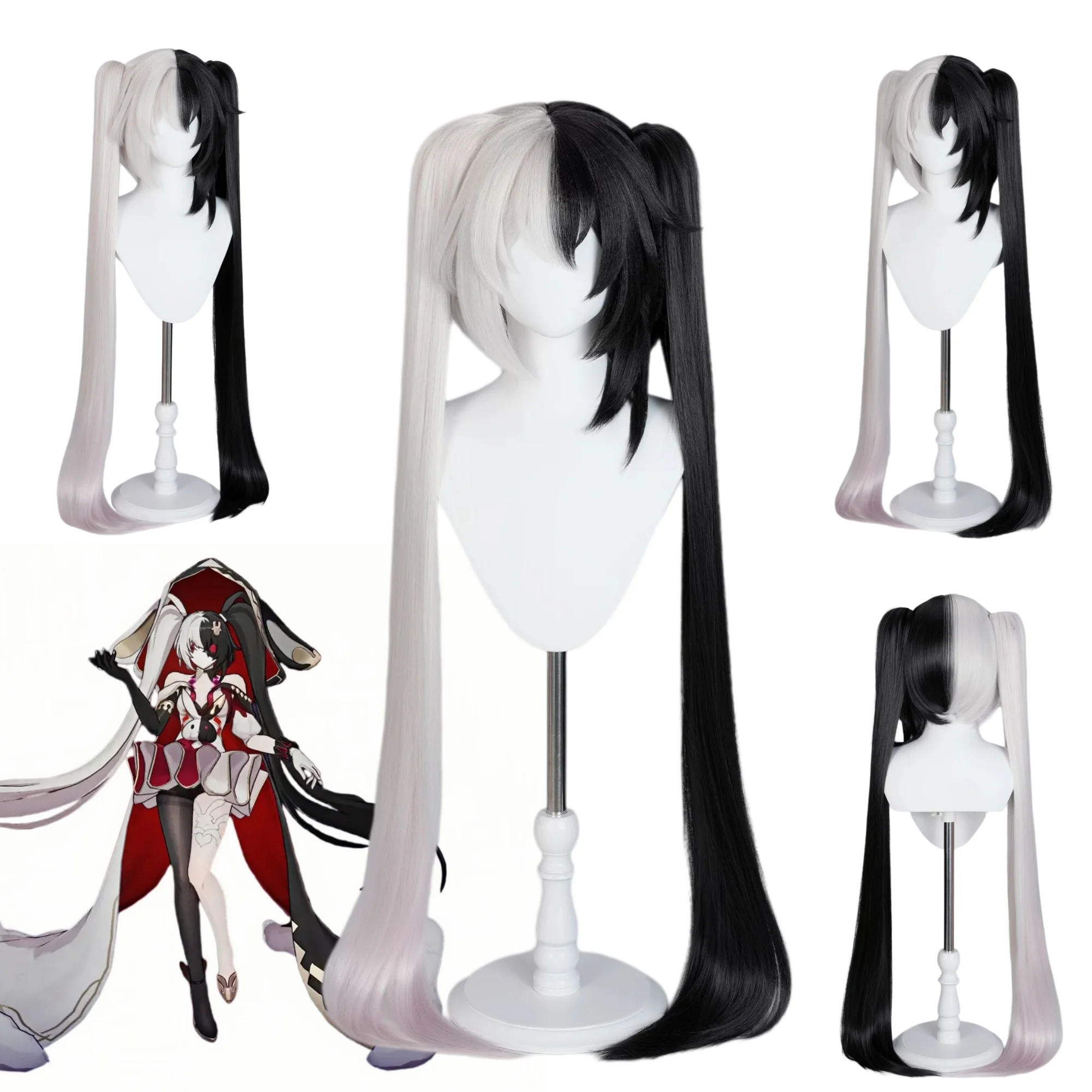 Anime Perona Miku Vrouw Cosplay Pruiken Roze Dubbele Paardenstaart Hittebestendige Synthetisch Haar Volledige Pruiken voor Halloween Party Netto Cap