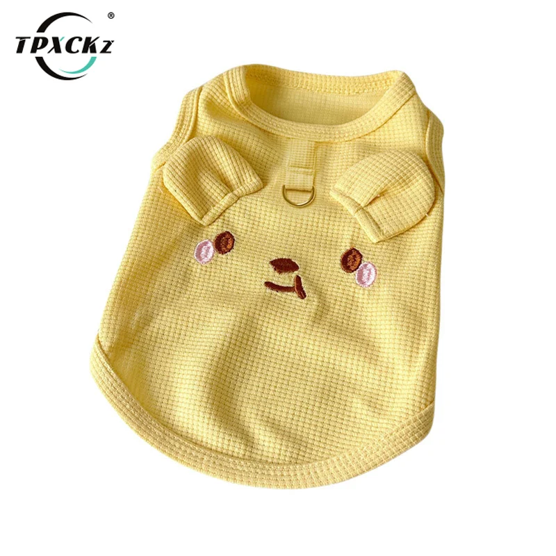 Schattig huisdiervest, ademend, wafelgebreid, zacht en comfortabel, met trekgesp, geschikt voor honden- en kattenvest in de lente/zomer
